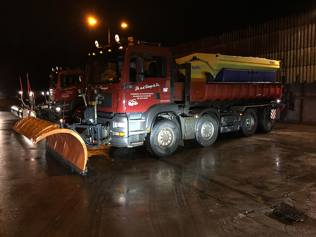 Strooiwagens GladheidsbestrijdingTh. vd Camp en Zn heeft een groot deel van hun wagenpark speciaal uitgerust voor gladheidsbestrijding.Voor zowel rijksoverheden, gemeenten en bedrijven voeren wij strooi- en sneeuwschuif-activiteiten uit.